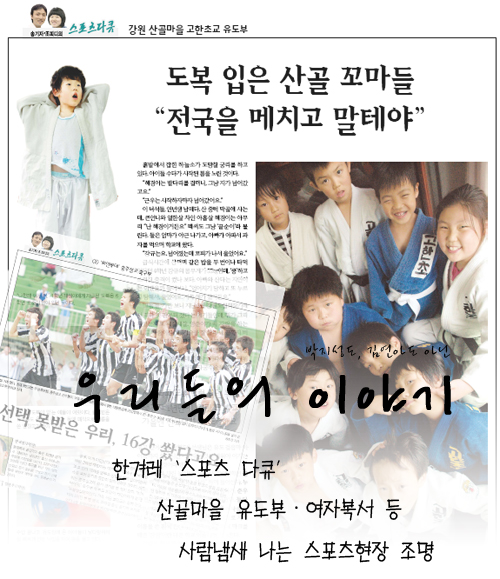 사람냄새 나는 스포츠현장 조명한 여자복서, 강원도 탄광촌 유도부 아이들, 외인부대 고교 축구부…. KBS 2TV ‘인간극장’이 방영한 프로그램이 아니다. 한겨레 스포츠면 ‘송기자·조피디의 스포츠다큐’가 다룬 이야기들이다.