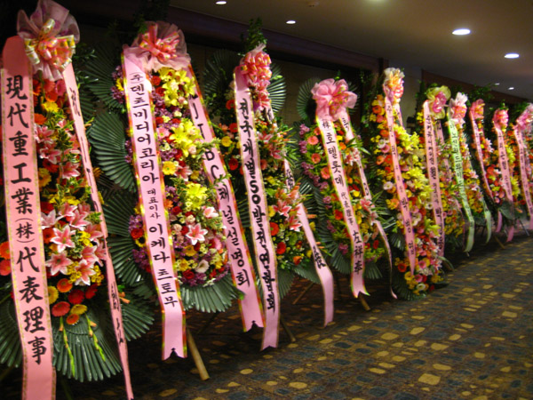 ▲ 6일 서울 중구 소공동 롯데호텔에서 열린 'jTBC' 매체설명회에 기업체들이 축하화환을 보내왔다. (김성후 기자) |