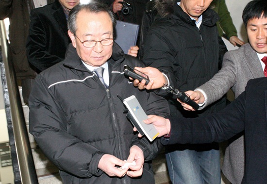 | ▲ 김대성 제주일보 회장이 21일 구속영장이 발부된 영장실질심사를 마치고 법정을 나서고 있다.(뉴시스) | ||