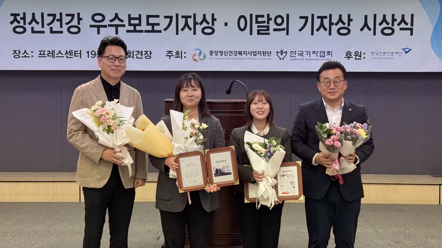 한국기자협회는 30일 서울 중구 한국프레스센터 19층 기자회견장에서 ‘제421회(2025년 9월) 이달의 기자상’ 시상식을 개최했다. 또 중앙정신건강복지사업지원단과 함께 신설해 첫 수상작을 배출한 ‘제1회 정신건강 우수보도 기자상’ 시상식도 진행했다.