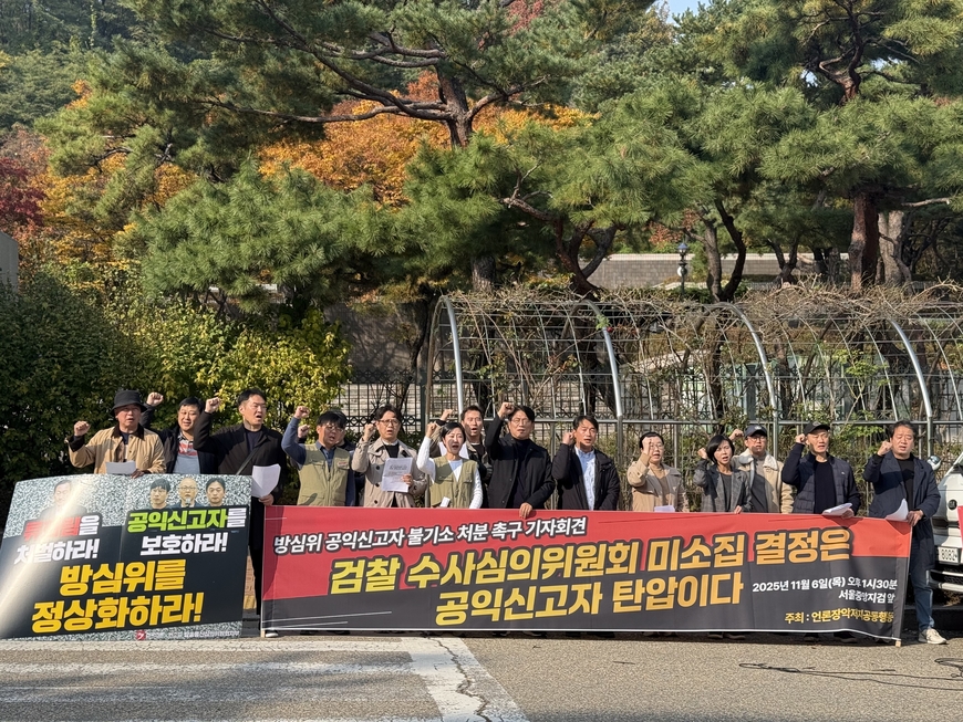 박진솔 민주언론시민연합 미디어감시팀장 역시 “언론 자유는 민주주의의 기본이고, 이를 지키는 마지막 보루는 내부의 진실을 용기 있게 알리는 공익 제보자들”이라며 “검찰이 공익 제보자들을 기소한다면 그 보루를 무너뜨리는 행위이자 시민 감시와 참여로 유지되는 민주주의 근간을 흔드는 위험한 전례로 남을 수 있다”고 말했다.