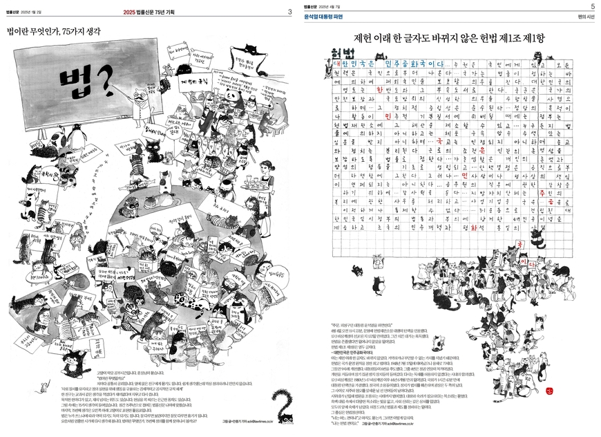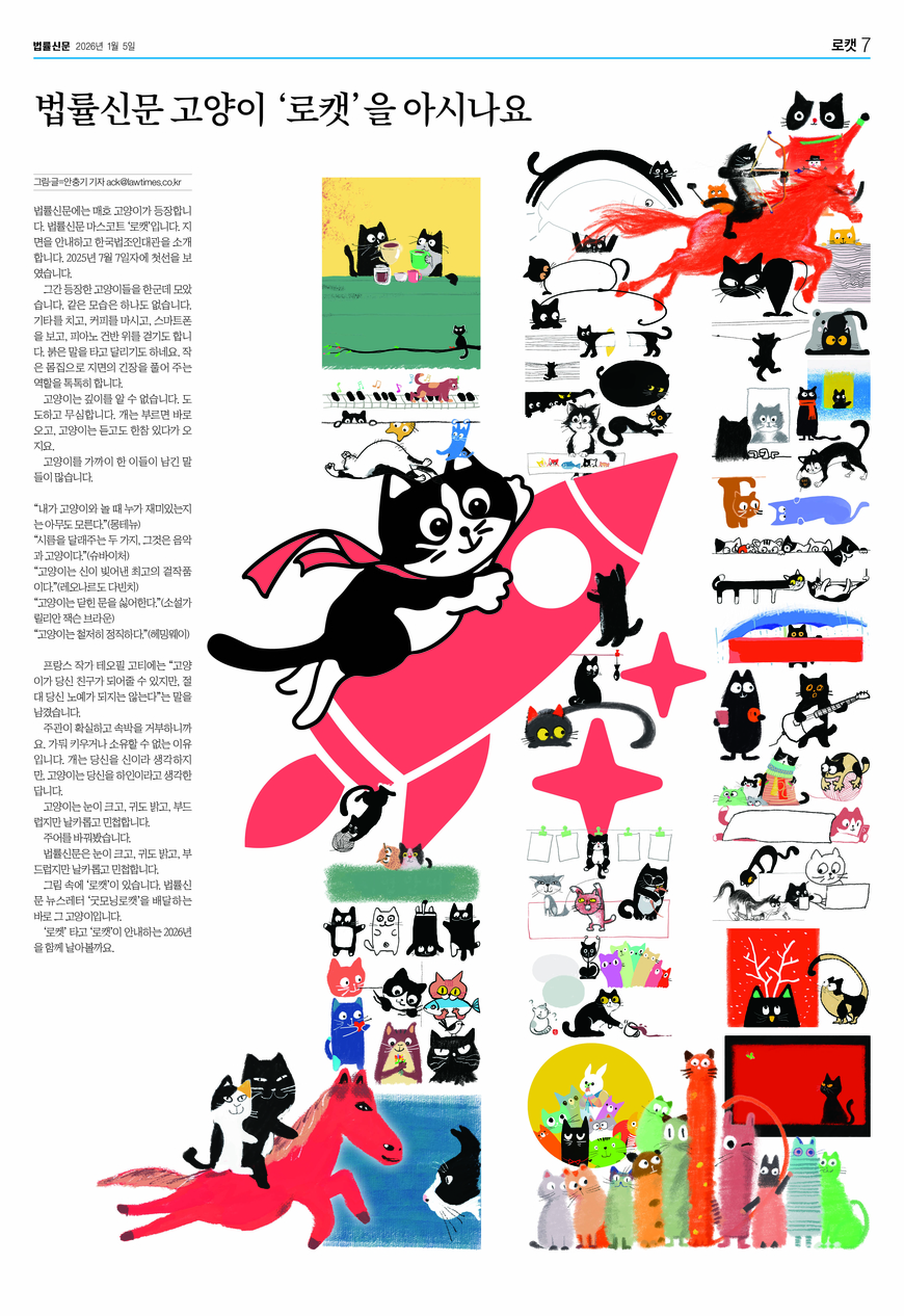 어른 엄지손톱 크기의 고양이 그림이 법률신문을 바꿔놓을 줄 그땐 몰랐다. 고양이 그림은 지난해 7월7일자 신문 1면 구석에 보일락 말락 등장했다. 작게 자리해 지면을 안내하고 한국법조인대관을 소개하는 역할이었다.