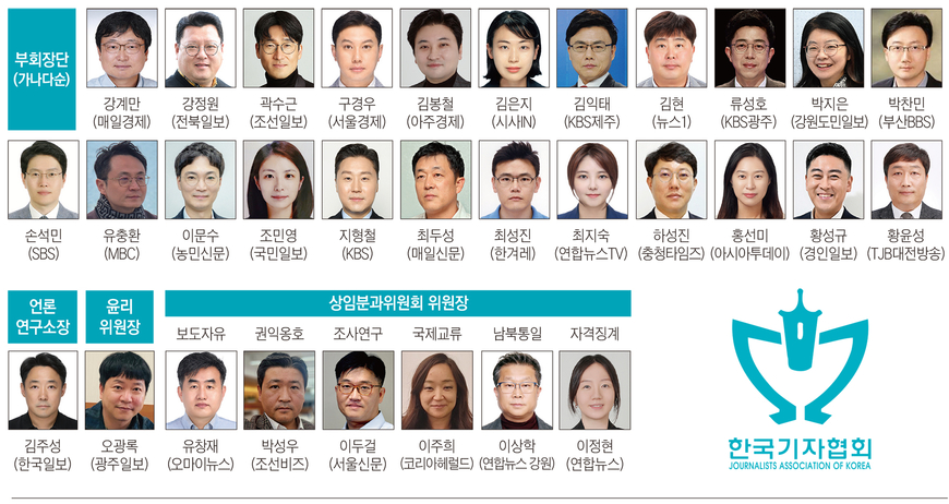 박종현 회장과 함께 2년간 한국기자협회를 이끌어 갈 제50대 집행부가 꾸려졌다. 한국기자협회는 6일 부회장 23명을 포함해 6개 상임분과위원회 위원장과 언론연구소장, 윤리위원장 인선을 발표했다.