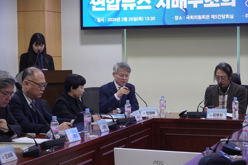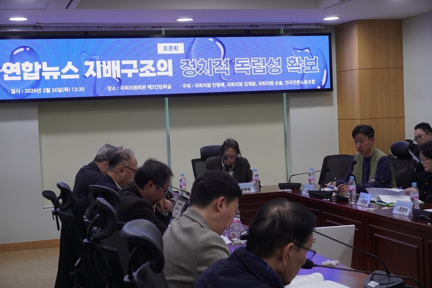 뉴스통신진흥법(진흥법) 개정안 논의에 전환점이 될 토론회가 2월26일 민형배·김재원·손솔 의원과 전국언론노동조합 공동 주최로 열렸다. 지난해 11월 발의 이후 연합뉴스 내부 논의에 머물던 진흥법 개정안이 토론회를 계기로 국회 상임위 심사로 나아갈 수 있을지 주목된다.