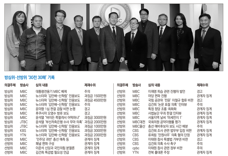 2024년 22대 총선을 앞둔 당시 선방위에서는 무분별한 법정제재가 쏟아졌다. 선방위에 행정소송이 제기된 19건의 법정제재와 해당 방송에서 문제로 지적된 54개 발언을 분석한 결과 △정부·여당 비판 20건 △김건희씨 비판 7건 △야당(더불어민주당) 편파 보도 8건 △자사(MBC) 편파 보도 6건 △방심위 비판 보도 4건 △여론조사 왜곡 및 공표 금지 여론조사 언급 4건 △허위사실 유포 4건 △자료 왜곡 1건으로 정부와 여당, 김건희씨 비판 발언에 절반 이상의 제재가 집중됐다.