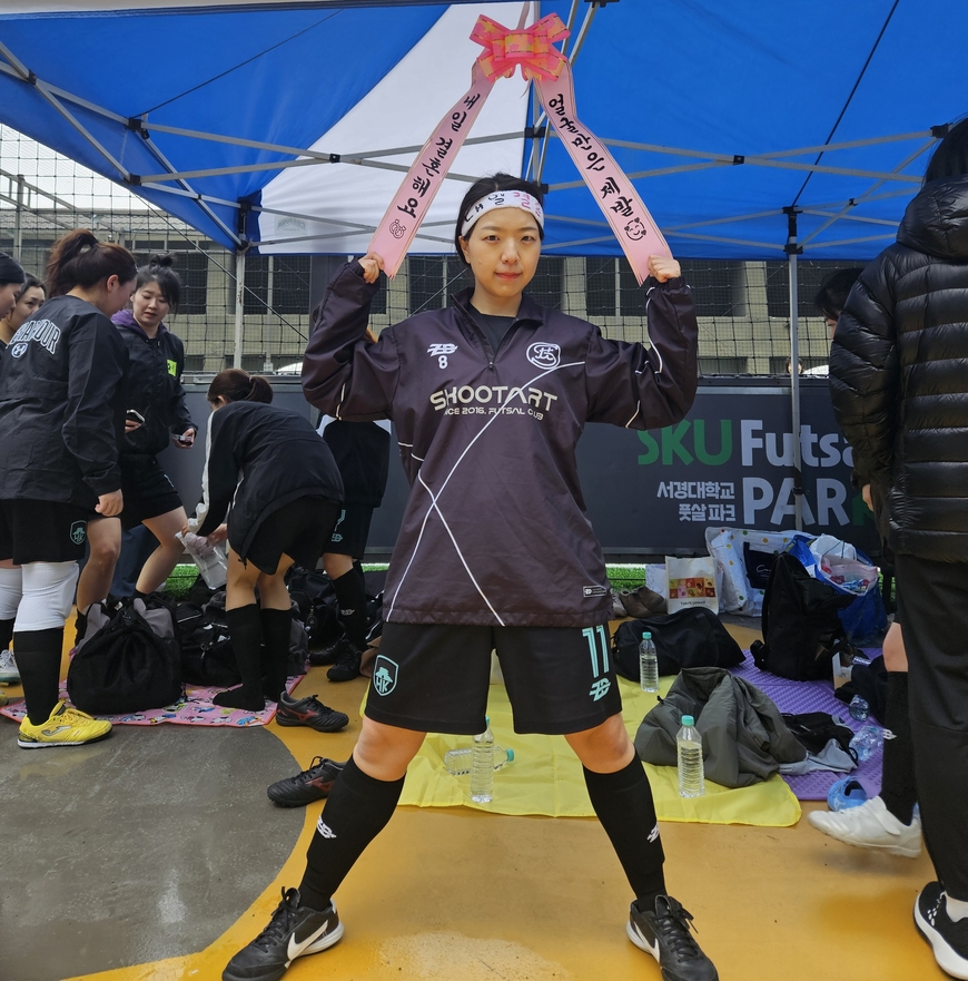 이날 이투데이와의 예선전부터 16강전까지, 경기장을 종횡무진으로 누빈 서현정 한국일보 기자는 다음날 결혼식을 앞둔 예비신부이기도 했다. 동기 나광현 기자의 설명에 따르면 서 기자는 ‘다리는 다쳐도 된다는 마음’으로 뛰었다고 한다. 8강 진출 소감을 묻자 서 기자는 “내일(11일) 오전 10시 경기인데 결혼식이 오전 11시라 동료들이 못 오게 됐지만, 이기는 게 더 기쁘다”며 “풋살대회 일정이 나왔을 때 신혼여행은 겹치지 않아 참가할 수 있어 오히려 다행이라는 생각이었다. 동료들이 우승컵으로 결혼선물을 안겨주면 좋겠다”고 전했다.