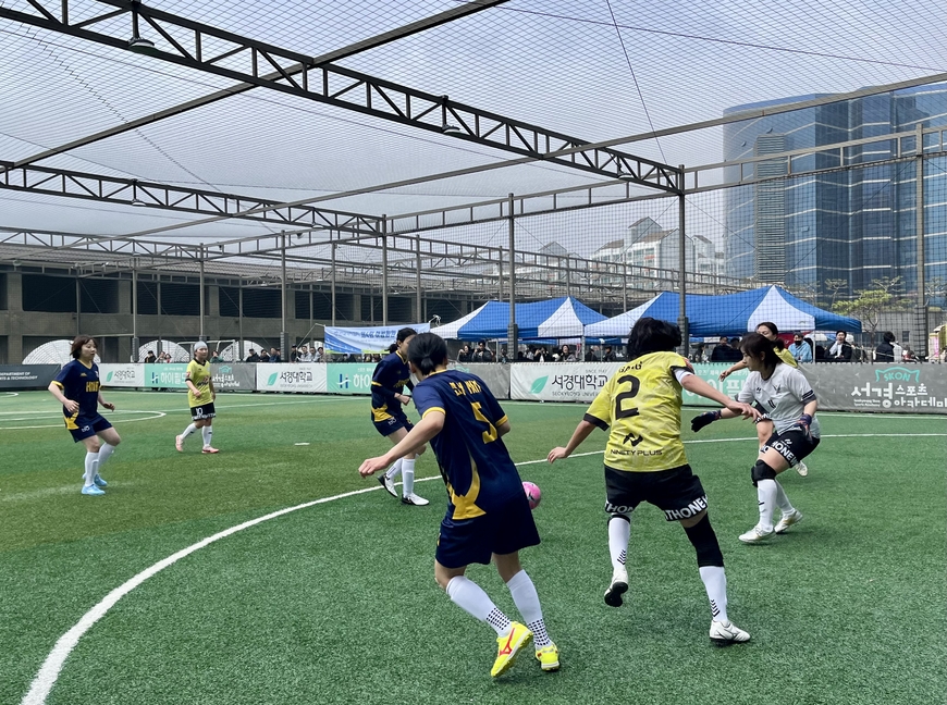 한겨레신문은 32강과 16강전 두 경기에서 각각 2골, 1골씩 넣으며 실점 없이 8강에 올랐다. 남지현 선수가 에이스다운 면모를 보였고, 주장이자 수문장인 장수경 선수의 수비도 빈틈이 없었다.