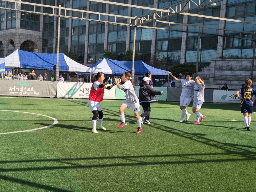 연합뉴스가 제4회 한국기자협회 여성회원 풋살대회 우승컵을 들어 올렸다. 연합뉴스는 12일 서울 성북구 서경대 풋살파크에서 열린 오마이뉴스와 결승전에서 전후반 0대0으로 비긴 뒤 승부차기에서 1대0으로 승리하며 대회 첫 우승을 차지했다.