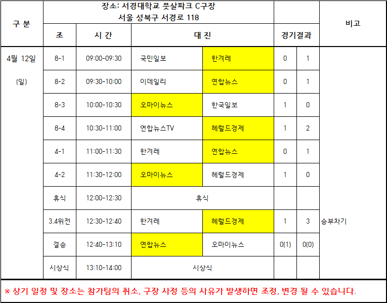 제4회 한국기자협회 여성회원 풋살대회 최종 결과 | |||