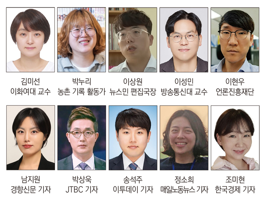 먼저 ‘언론 다시보기’ 필진으로 김미선 이화여대 한국여성연구원 학술연구교수, 박누리 농촌 기록 활동가, 이상원 뉴스민 편집국장, 이성민 한국방송통신대 미디어영상학과 교수, 이현우 한국언론진흥재단 선임연구위원이 참여합니다. 기존의 저널리즘 비평을 넘어 미디어 기술과 산업, 콘텐츠 비즈니스를 아우르는 다양한 칼럼을 만날 수 있습니다.