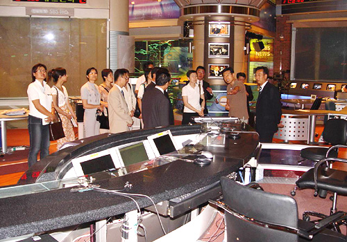 중국기자협회 방문단 일행이 SBS를 방문 회사 시설을 둘러보고 있다.