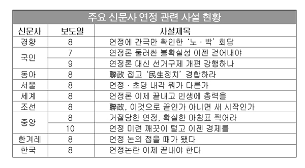 특히 중앙일보는 10일자 사설에서 연정논의를 지적한 후 한나라당의 자세를 꼬집기도 했다.