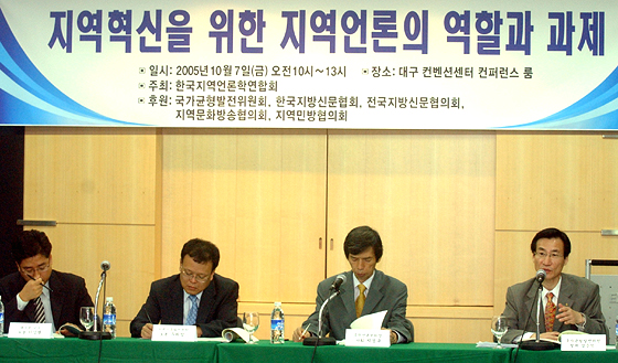 이어 정상윤 경남대교수는 최근 상주참사를 예로 들며 "지역축제에 서울연예인을 보려고 몰려들어 사고가 나고 지방방송들이 이런 이벤트를 별다른 이의 없이 수용하는 한 진정한 지방분권과 지역균형발전을 이뤄질 수 없다"며 "이제는 로컬뉴스를 전국뉴스보다 먼저 보도하는 등 근본적인 지방방송 패러다임의 전환이 시급하다"고 역설했다.