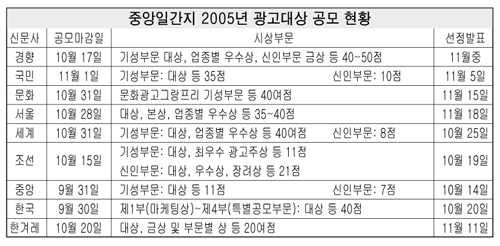 현재 중앙일간지 가운데 내일신문, 동아일보를 제외한 모든 신문사가 자사의 이름을 붙인 광고대상(문화일보는 광고그랑프리)을 공모, 시상하고 있다.