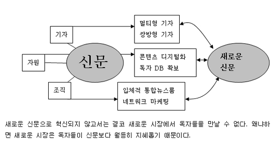 그것은 신문 내부의 사람-조직-자원 혁신의 기반이 되기 때문이다. 이 때에 등장하는 변화와 성공의 조건들은 다음의 것들로 정리할 수 있다.