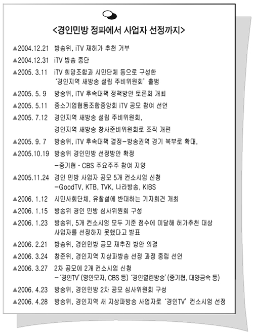 ▲2006. 4.28 방송위, 경인지역 새 지상파방송 사업자로 '경인TV' 컨소시엄 선정