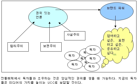 한국사회에서 만개하고 있는 UCC의 흐름을 신문기업이 전향적으로 끌어내기 위해서는 지식대중의 충분한 호감을 받지 않으면 어렵다. 그것도 시장 내외에서 해당 신문의 브랜드가 평균적으로 인식되고 있어야 한다.
