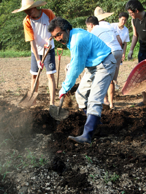 | ▲ 민심대장정 49일째를 맞고 있는 손학규 전 경기지사가 17일 경남 고성군 천사의 집에서 자원봉사 학생들과 함께 텃밭에 거름을 뿌리고 있다. (연합뉴스) | ||