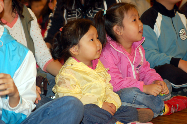 자매의 무아지경 레크리에이션에 참석한 어린 참가자들이 호기심 가득한 눈으로 행사를 지켜보고 있다.