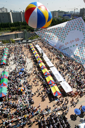 전국에서 35만명이 모인 이번 행사는 중고 생활용품을 파고 사는 장터를 비롯해 가족신문 제작코너, 축하공연, 유명인들의 경매 행사 등 다양한 프로그램으로 진행됐다.