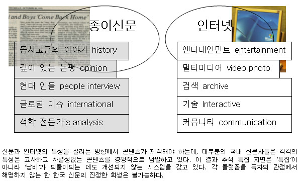 20세기 신문의 전형을 보여준 올해 추석특집 타블로이드판을 제작한 기자들도 적지 않은 부끄러움을 느꼈을 것이다. 이러한 콘텐츠로 독자들을 상대하는 것이 과연 의미있는 일인지 자괴했을지 모른다.