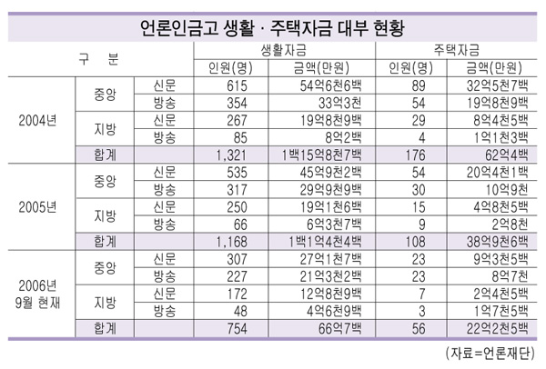 한편 언론인금고관리위원회는 신문협회 방송협회 기자협회 언론노조 신문방송편집인협회 문화부 언론재단 등에서 추천한 인사 7명으로 구성됐다.