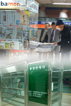 서울메트로(1~4호선)에서 관리하는 가판대는 지난해보다 10개가 줄어든 1백39개가 남은 상태다. 판매 관계자들은 가장 큰 이유로 무료신문이 등장하면서 신문판매량이 40~50%이상 급감했기 때문이라고 분석했다.