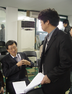 ▲ '시민의 신문' 사장으로 내정된 남영진 전 한국방송광고공사 감사가(오른쪽) 주주총회에서 결정을 기다리고 있다. |