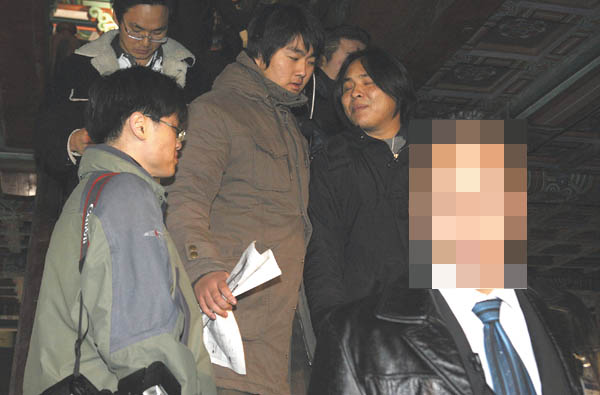 | 사진기자들이 타종 장면을 취재하기 위해 보신각으로 들어가려고 하자 KBS에서 고용한 사설 경호원이 이를 제지하고 있다(제공=연합뉴스) |