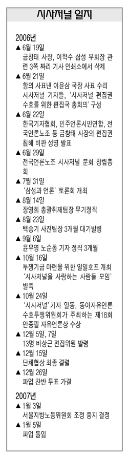 현재 시사저널 노조는 지난 5일 하루 파업 후 일선에 복귀, 정상근무를 하고 있다.