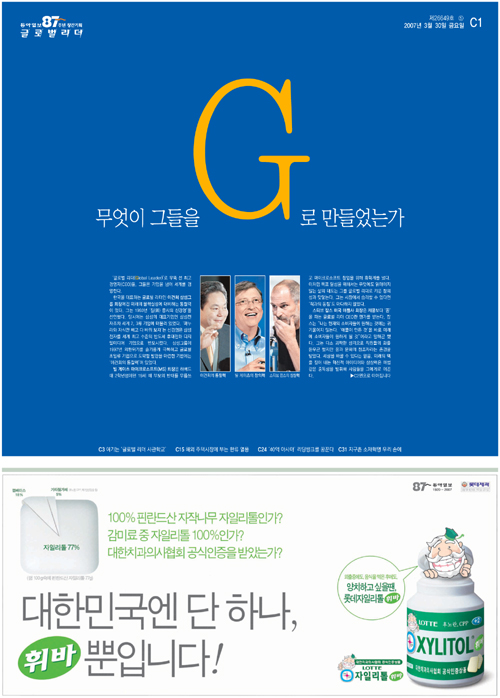 동아일보의 창간87주년 기획섹션 '글로벌리더' |