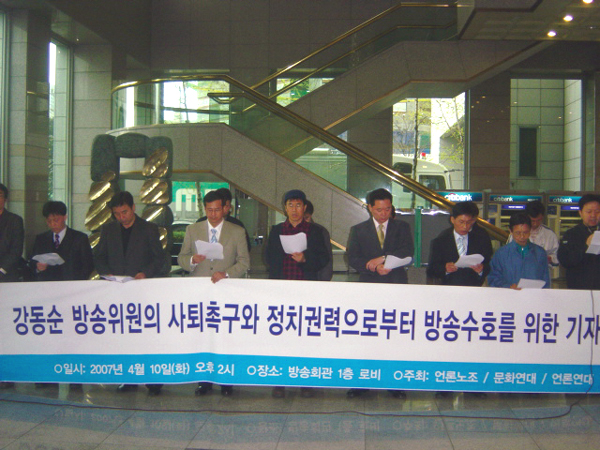 언론노조는 “강 위원이 버티면 그를 추천한 한나라당도 뭐라고 하지 못하는 현 상황을 볼 때 방송위원회의 독립성이 지나치다는 느낌이 든다”고 덧붙였다.
