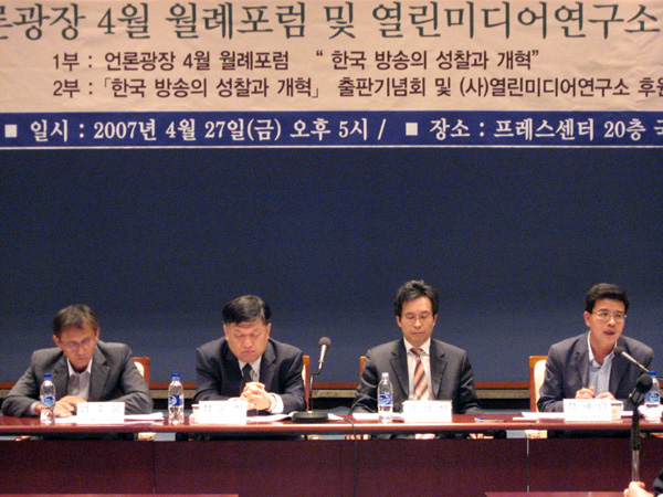 한편 이날 월례포럼에 이어 열린미디어연구소 김학천 소장(전 EBS사장)과 강 교수, 정 교수, 건국대 황용석 교수 등이 공동 편저한 ‘한국방송의 성찰과 개혁’ 출판기념회가 열렸다.