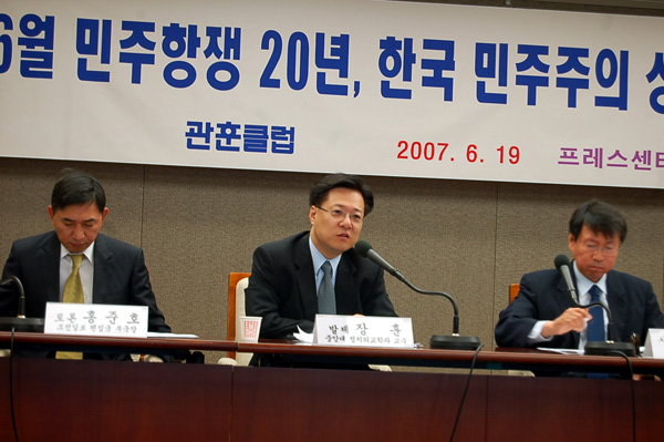 19일 서울 프레스센터 기자회견장에서 관훈클럽(총무 이재호·동아일보 논설실장)세미나 ‘6월 민주항쟁 20년, 한국 민주주의 성장과 과제’가 열렸다.