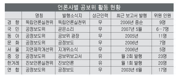 사내 의사소통 통로와 옴부즈맨 등의 역할을 해 왔던 각 언론사 공정보도위원회가 ‘유명무실’해지고 있다.