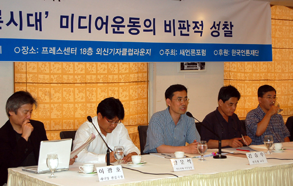 새언론포럼(회장 최용익 MBC논설위원)이 13일 ‘민주화 20년, 언론개혁 어디까지 왔나?’라는 주제로 프레스센터 외신기자클럽에서 개최한 토론회에서 발제를 맡은 전북대 김승수 교수(신문방송학)는 “언론개혁은 여전히 완성되지 않았으며 언론 자유 수준 역시 원시적이다”라며 “단적인 예가 ‘시사저널’ 정도의 저널리즘이 무너진 것”이라고 지적했다.