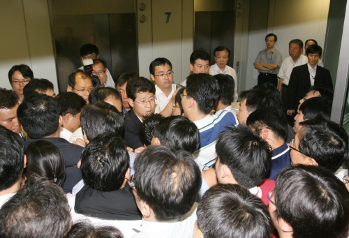 검찰 측은 긴장이 계속되자 7시 이후 대책을 논의하자고 일단 물러서 동아일보 측과 협상을 벌이고 있는 상태다.