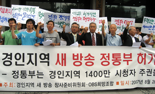창준위는 이날 성명에서 “경인지역 새 방송사인 OBS경인TV가 방송위로부터 지난 4월12일 허가추천을 받았지만 정보통신부는 다섯 달이 지나도록 허가를 내주지 않고 있다”며 “항간에는 정통부가 이처럼 허가를 지연시키고 있는 이유에 대해 “‘외압’ 때문이다”, 또는 “타 방송사 눈치를 보고 있기 때문이라는 소리도 들리고 있다”고 밝혔다.