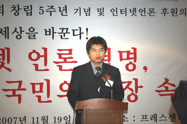 윤승용 수석은 대통령 축하메시지를 통해 “인터넷은 참여 민주주의의 새 장을 열어가고 있다. 자발적인 정치참여의 기회가 늘어나고, 깨끗한 선거문화 조성에도 크게 기여하고 있다”며 “이러한 변화의 중심에 인터넷 기자 여러분이 있다”고 전했다.