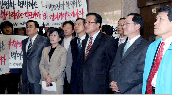 | ▲ 29일 오후 3시 한나라당 국회의원들이 MBC 사장을 항의 방문했다. (사진=문화방송노조) | ||