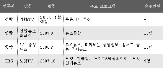 한 신문사 관계자는 “케이블은 보도와 관련된 프로그램을 만들 수 없지만 인터넷은 자유롭게 편성할 수 있기 때문에 방송에 관심 있는 몇몇 신문사를 중심으로 관련 서비스를 실시하는 것 같다”고 설명했다.