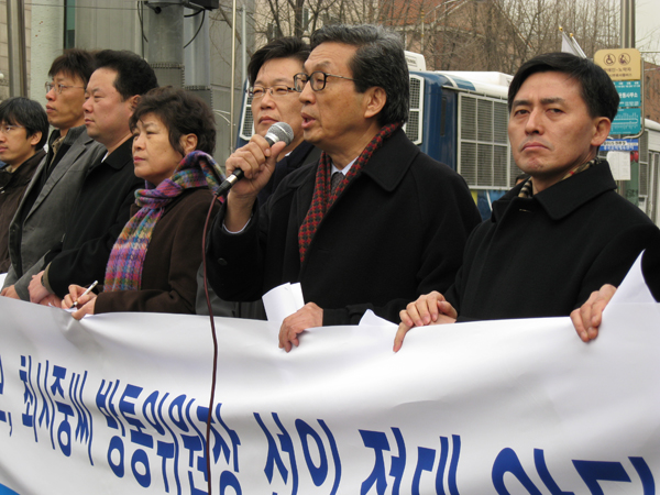 ▲ 언론개혁시민연대 김영호 공동대표는 28일 기자회견을 갖고 “미디어를 장악하려는 최시중씨 방통위원장 내정을 즉각 철회하라”고 말했다. |