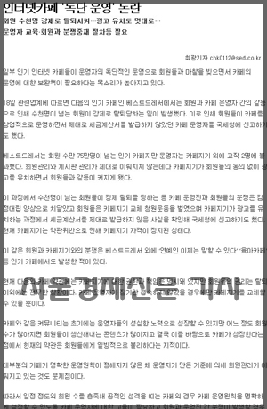 실제로 두 기사는 첫 문장에서 “일부 인기 인터넷 카페들이 운영자의 독단적인 운영으로 회원들과 마찰을 빚으면서 카페의 운영에 대한 보완책이 필요하다는 목소리가 높아지고 있다”고 똑같이 시작했다.