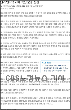 21일 CBS노컷뉴스에 올라온 ‘인기 인터넷 카페 ‘독단운영’논란’이란 기사가 지난 18일자 서울경제 기사(‘인터넷카페 ‘독단운영’논란’)를 그대로 도용해 문제가 되고 있다.