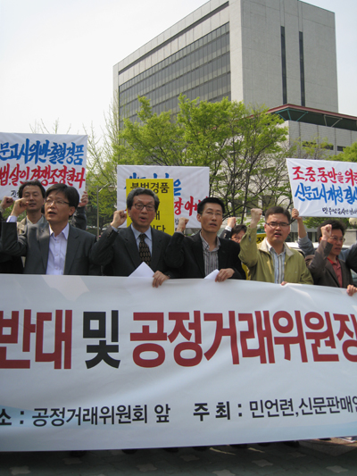 이들은 “그 사이 신문산업은 오히려 퇴보하고 신문시장은 황폐화되고 자본을 앞세워 불.탈법을 일삼는 신문들이 득세하는 ‘정글의 법칙’만 남았다”며 “지국들은 본사와의 불공정관계 속에 과당, 불법, 출혈 판매경쟁에 내몰려 거리로 나앉거나 목숨을 담보로 항거해하는 처지에 놓였다”고 지적했다.