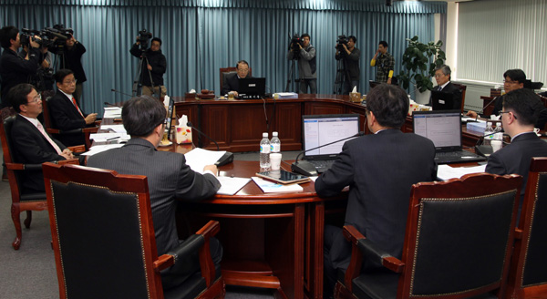 ▲ 최시중 방송통신위원장이 30일 오후 서울 세종로 방송통신위원회에서 열린 제21차 전체회의를 주재하고 있다.(연합뉴스) |