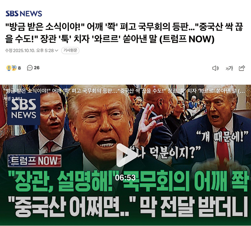 한국과 직접 연관은 없더라도 트럼프의 전반적인 외교 성향을 파악할 수 있는 내용이라면 다루기도 한다. SBS 뉴스 유튜브 채널에 연재 중인 ‘트럼프 NOW’는 3월 아일랜드 총리가, 5월엔 남아프리카공화국 대통령이 미국 백악관을 방문했다가 트럼프 대통령에게 모욕당했다는 소식을 자세히 전했다. 각 영상의 조회수는 14일 기준 125만 회와 715만 회를 넘겼다.